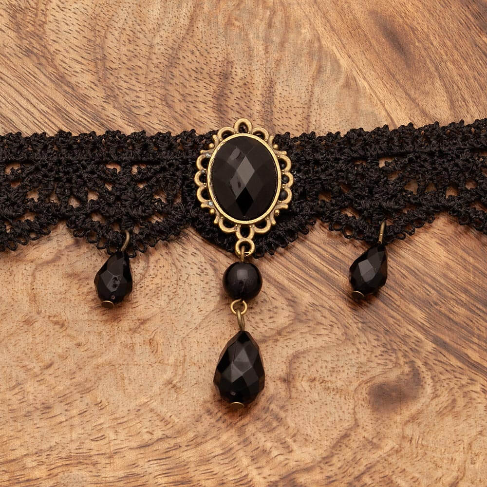 Čipkasta ogrlica s črnim kubičnim cirkonijem.