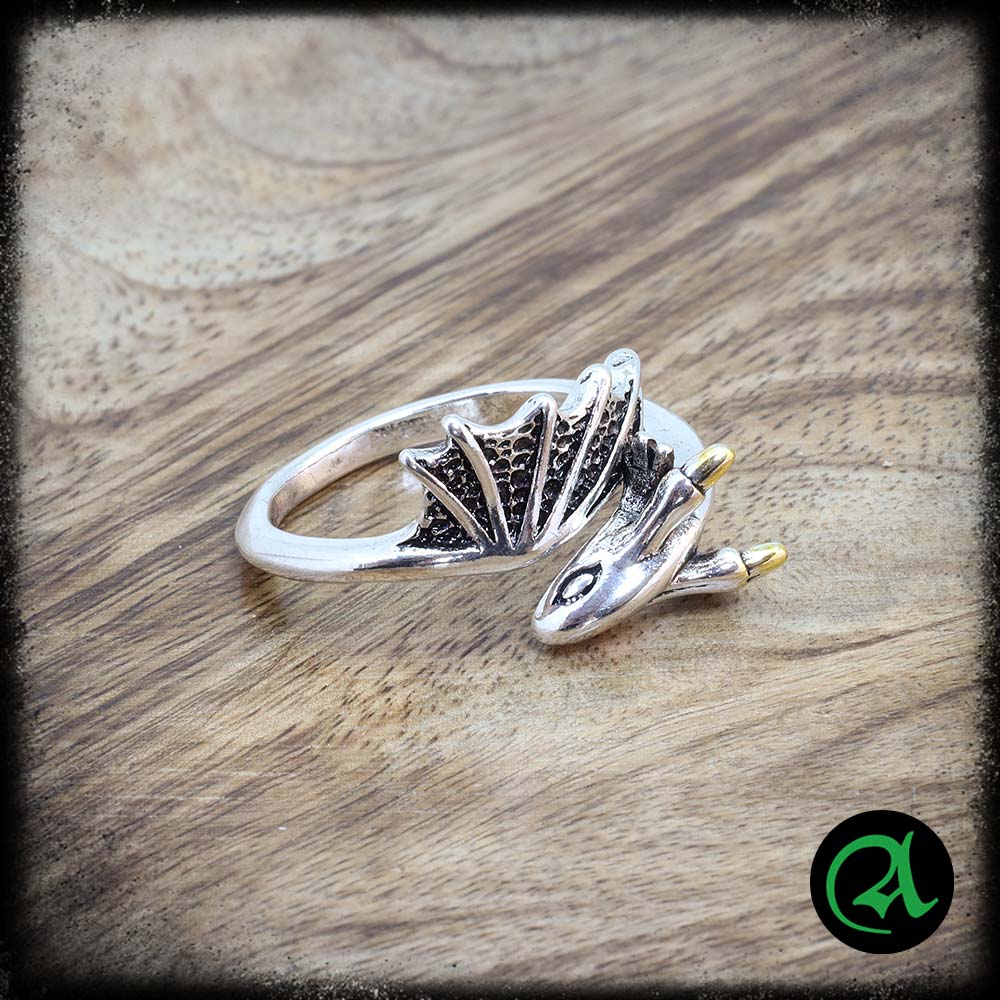 Prstan SREBRNI ZMAJČEK ,  velikost je samonastavljiva.